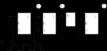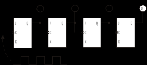 Следует заметить, что в данном счетчике JK‑триггеры используются как в режиме переключения (J=K=1), так и в режиме блокировки (J=K=0).
