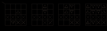 В клетках карты указываются значения функции переходов. Знаком «X» обозначаются безразличные наборы, которые соответствуют нештатным состояниям счетчика.