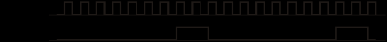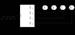 Из рис.13.9 видно, что 20 импульсов на входе счетчика преобразуются в 2 выходных импульса. Выполняется деление 20/2=10. Снимая сигнал с входа QD, декадного счетчика, получим счетчик‑делитель на 10. Т.е. частота выходного сигнала состовляет 1/10 частоты на входе счетчика.