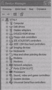 Щелкнув по кнопке, вы увидите на экране список всех установленных в вашей системе устройств. Если устройство работает некорректно (а это в большинстве случаев вызвано именно неполадками с драйверами), слева от его названия вы увидите тревожный восклицательный знак. Если знака нет, можете вздохнуть свободно: ваши устройства в полном порядке.