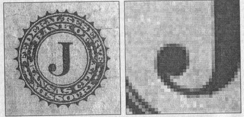У програмі редагування векторних малюнків лінії, фігури і текст задаються математичними виразами, що дає можливість автоматично пристосовувати їх на максимальне розширення пристрою виводу. Програма посилає на принтер математичні вирази, що переводяться в зображення на папері або плівці. Іншими словами, принтер перетворить математичні вирази в пікселі. У порівнянні з екраном, розширення принтера набагато вище. У звичайного лазерного принтера воно дорівнює 300 точок (пікселів) на дюйм, тоді як більшість моніторів може забезпечити всього 72 пікселі на дюйм. У результаті роздруковане зображення виходить гладким і контрастним незалежно від розміру, що і продемонстровано на мал. 2.