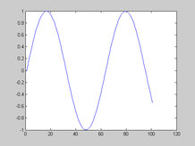 Рассмотрим простейший пример - построение графика синусоиды. MATLAB строит графики функций по ряду точек, соединяя их отрезками прямых, т. е. осуществляя линейную интерполяцию функции в интервале между смежными точками. Зададим интервал изменения аргумента x от 0 до 10 с шагом 0.1. Для построения графика достаточно вначале задать вектор х=0:0.1:10, а затем использовать команду построения графиков plot (sin(x)).