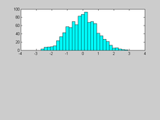 Классическая гистограмма характеризует числа попаданий значений элементов вектора Y в М интервалов с представлением этих чисел в виде столбцовой диаграммы. Для получения данных для гистограммы служит функция hist, записываемая в следующем виде: