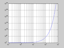 На рисунке представлен график функции ехр(х)/х в логарифмическом масштабе. Командой grid on строится координатная сетка. Неравномерное расположение линий координатной сетки указывает на логарифмический масштаб осей.
