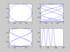 >> subplot(2,2,2), plot(sin(5*x), cos(2*x+0.2))