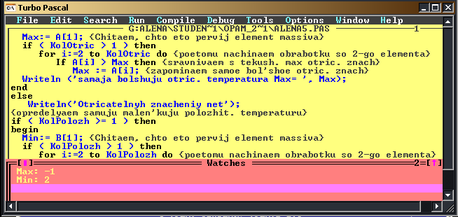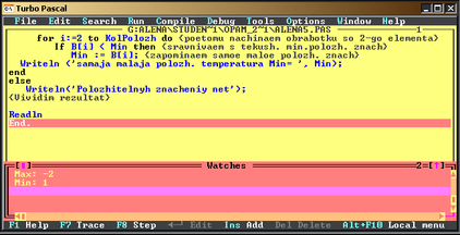 Writeln ('samaja malaja polozh. temperatura Min= ', Min);