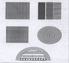 Агрессивная визуальная среда - это среда, в которой человек одновременно видит большое число одинаковых элементов. На рисунке приведены типичные образцы агрессивных полей и примеры их сочетаний. Одного взгляда на эти образцы достаточно, чтобы убедиться, что они вызывают исключительно неприятные зрительные ощущения. Причём даже гомогенные поля воспринимаются человеком намного легче, чем агрессивные.
