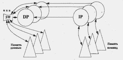 иерархия памяти (IM – Instruction Memory, DM – Data Memory) – запоминающее устройство, в котором хранятся данные и команды, пересылаемые между процессорами;