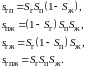 Більш коректно колір описується аналогічними рівняннями, де кількість S базових кольорів виражено імовірностями їхнього утворення через відносні площі растрових точок трьох фарб SГ, SП, SЖ.