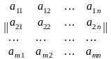 Если необходимо отметить, что матрица А имеет mстрок и nстолбцов, т.е. необходимо указать её размеры, то пишут Аm×n, или Аmn.