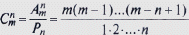 Сочетаниями называют комбинации, составленные из n различных элементов по m элементов, которые отличаются хотя бы одним элементом. Число сочетаний: