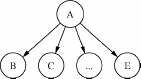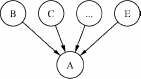 и(a) Последовательное соединение. Влияние информации может распространяться от A к C и обратно, пока значение B не конкретизировано. (b) Дивергентное соединение. Влияние может распространяться между потомками узла A, пока его значение не конкретизировано. (c) Конвергентное соединение. Если об A ничего не известно, кроме того, что может быть выведено из информации о его предках B,C,... ,E, то эти переменные предки являются разделенными. При уточнении A открывается канал взаимного влияния между его предками.