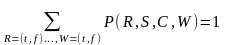 P(R, S, C, W) = P(R) *P(S) * P(C |R,S)*P(W | R).