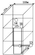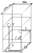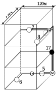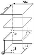 Для заданного плана расположения узлов сети выбрать оптимальную топологию сети и рассчитать минимальную суммарную длину соединительного кабеля. Топологию выбирать с учетом того, что между строениями планируется использовать только оптоволоконный кабель, внутри строений - коаксиальный кабель или витую пару.