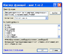 Статистические функции для регрессионного анализа из категории Статистические в окне мастера функций: