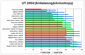 | 5 | Gigabyte Radeon X800 XT 256Mb | 9,5 | 8 | 6,5 | 9 | 8,4 | 8 | ~550 |