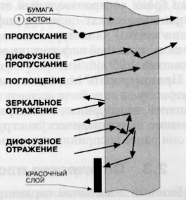 Юл і Нільсен, які вивчали цю залежність, пояснили отримане відхилення тим, що світло, яке падає на білі частини растрового елемента, не тільки відбивається ними, але і проходить у папір, розсіюється там, а деяка частина розсіяної складової поглинається фарбою растрових елементів (рис. 3).