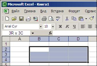 Рис. 2. Выделенный диапазон ячеек (блок).