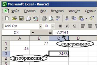Если содержимым ячейки является формула, то изображением будет ее значение.