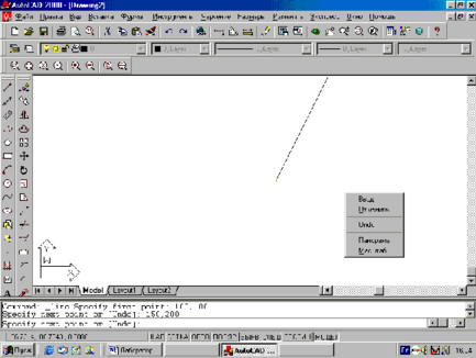 Натиснення клавіші Enter в останньому рядку команди забезпечує виконання і завершення команди. Будь-яку команду, в тому числі і цю, можна завершити натисненням правої кнопки миші на будь-якому місці графічної робочої зони. При цьому на екрані появиться контекстне меню (рисунок 4). Вибір рядка Ввід (натиснувши по ній лівою кнопкою миші) забезпечить виконання команди.