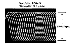 Общее число бит в кадре 33 * 17 = 561. К ним добавляется 27 бит синхронизации, так что число бит в кадре 588. Частота следования 4.3218 МГц. Полученная последовательность управляет лучем лазера записывающего узла. Работа всех узлов рекордера синхронизируется генератором тактовой частоты.