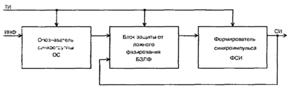 Для правильного декодирования информационной последовательности необходимо знать, где начинается кадр информации. Распознавание начала кадра производится по кадровому синхроимпульсу в устройстве цикловой синхронизации (см. рис. 13).