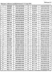 Таблица 1 Фрагмент таблицы преобразований 8-14