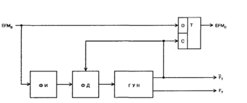 Чтобы правильно декодировать информационный сигнал, необходимо сделать длительность импульсов кратной периоду тактовой частоты. Эта задача решается путем фазовой автоподстройки частоты. Структурная схема устройства показана на рис. 13 а, а временные диаграммы – на рис. 13 б.
