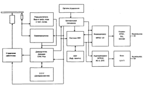 Структура проигрывателя DVD в основных чертах похожа на структуру проигрывателя компакт-дисков. Однако, сжатие информации при записи требует включение в схему соответствующих декодеров (см. рис.16).