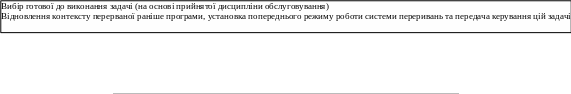 Супервізор переривань насамперед зберігає в дескрипторі поточної задачі робочі регістри процесору, що визначають контекст обчислювального процесу, що переривається. Далі він визначає ту підпрограму, що повинна виконати дії, зв'язані з обслуговуванням поточного запиту на переривання. Нарешті, перед тим як передати керування цій підпрограмі, супервізор переривань установлює необхідний режим обробки переривання. Після виконання підпрограми обробки переривання керування знову передається супервізору, цього разу уже на той модуль, що займається диспетчеризацією задач. І уже диспетчер задач, у свою чергу, відповідно до прийнятого режиму розподілу процесорного часу (між процесами, що виконуються,) відновить контекст тієї задачі, якій буде вирішено виділити процесор. Розглянута нами схема проілюстрована на мал.3