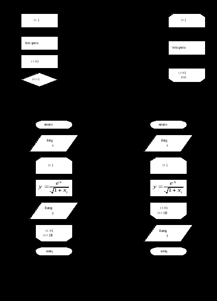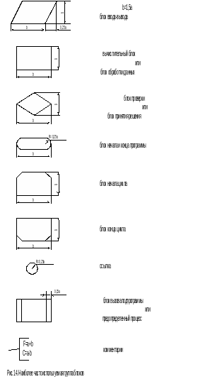 Наиболее наглядный способ представления алгоритмов - их изображение в виде схем - последовательности блоков (рис.14), предписывающих выполнение определенных функций, и связей между ними [6]. Внутри блоков указывается поясняющая информация, характеризующая выполняемые ими действия. Конфигурацию и размер блоков, а также порядок построения схем определяет ГОСТ 19002 и 19003.