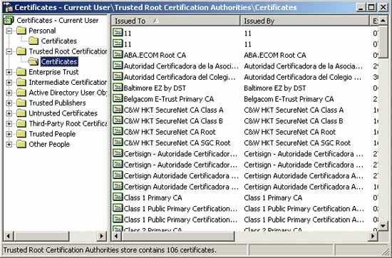 | Trusted Root Certification Authorities (Доверенные корневые центры сертификации) | Полностью доверяемые центры сертификации | |