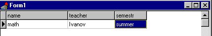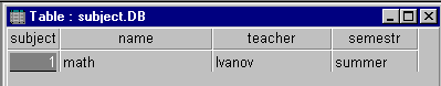 Результат – створення таблиці subject з полями name, teacher, semestr.