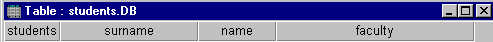 При запуску цього запиту створюється таблиця з ім”ям students, в якій є поля surname, name, faculty, course текстового типу.