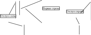 Отступ для первой строки – если в раскрывающемся списке Первая строка вы выбираете вариант Отступ (на вкладке Отступы и интервалы), первая строка абзаца будет отодвинута вправо по отношению к другим строкам (на расстояние, которое вы укажете в соседнем поле На). Если вы выберете в поле Первая строка вариант Выступ, все строки, кроме первой, будут отодвинуты вправо (на расстояние, указанное в поле На).