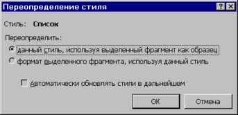 ord выведет на экран диалоговое окно Переопределение стиля:
