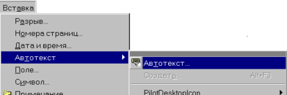 Вставка автотекста производится нажатием кнопки F3.