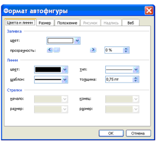 Диалоговое окно формат. Диалоговое окно формат предполагает наиболее полные возможности для форматирования графических объектов.