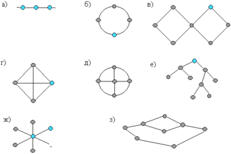 Линейная структура (рис.2.1, а) характеризуется тем, что каждая вершина связана с двумя соседними. При выходе из строя хотя бы одного элемента (связи) структура разрушается.