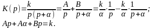 Если применим теоремы Лапласа при нулевых начальных условиях, то дифференциальное уравнение в операторной форме запишется следующим образом