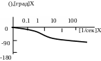Логарифмическая фазовая частотная характеристика (ЛФЧХ) строится в логарифмическом масштабе частот, при этом частоты откладываются по оси абсцисс по декадам (рис. 9б). Декада – отрезок, на котором частота увеличивается в десять раз.