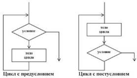 В цикле с предусловием сначала проверяется условие, а потом делается шаг. Грибник придет с полной или почти полной корзиной. В цикле с постусловием – сначала шаг, а потом проверка. Как всякий нормальный грибник, этот принесет полную или слегка переполненную корзину.
