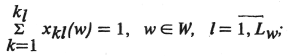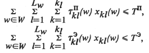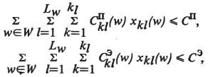 Переменные: xkl(w) = 1, если k-й метод зашиты, относящийся к l-му уровню, закреплен за объектом w и xkl(w) = 0, в противном случае
