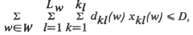, 1 ≤ l ≤ LW, 1 ≤ k ≤ kl.