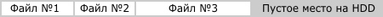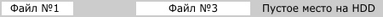 Теперь представим, что мы сохранили файлы на пустой жесткий диск, все файлы разного объема. Они по мере сохранения, по порядку, записались на жесткий диск. Потом мы стерли какой-то файл из середины, записанной серии файлов. А теперь хотим записать еще один файл на диск, но он чуть больше файла, который мы стерли из середины. Куда он запишешься? На место стертого файла он не помещается, значит, запишем его в конец очереди. А как же то неиспользованное пространство жесткого диска, где находился стертый файл? Это пространство осталось неиспользованным. В ходе работы пользователя за компьютером, такие записи и стирания происходят постоянно. Что бы сохранить пространство жесткого диска для файлов, а не для пустых пропусков, есть правило: "Используем любое пустое пространство диска, которое ближе к началу. Если файл не помешается, делим его на части и записываем по частям".