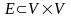 ) - множество ребер графа. То есть все ребра из множества E соединяют некоторые пары точек из V.
