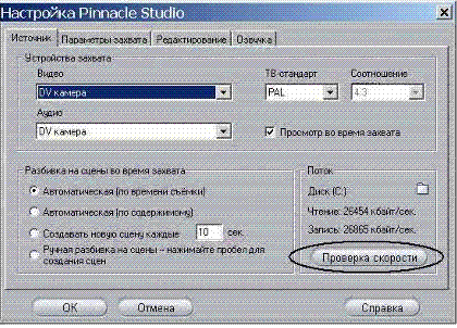 К сведению: цифровой видеопоток передается из камеры со скоростью около 3,6 Мб в секунду. Таким образом, для успешного его приема диск должен записывать данные со скоростью не менее 3,6 Мб/с, а для передачи цифрового видео в камеру он должен с такой же скоростью считывать данные.