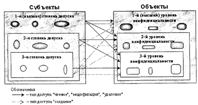 Рис. 4. Модель безопасности данных Белл — ЛаПадула (мандатный принцип разграничения доступа)