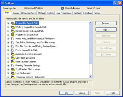 Любое устройство (локальное или сетевое), к которому вы обращаетесь для вывода чертежа из AutoCAD, должно быть специальным образом конфигурировано (описано) в системе AutoCAD. Операция по установке плоттеров или редактированию их настроек требует специальных знаний. Ее лучше выполнять опытным пользователям или системным администраторам, обслуживающим вычислительные комплексы, на которых функционирует AutoCAD. Поэтому данный раздел содержит лишь самую основную информацию о процессе добавления плоттера. Дополнительную информацию можно найти либо в справочной системе AutoCAD, либо в документации, поставляемой вместе с системой. Автономная настройка (т. е. не зависящая от связи с AutoCAD) самого устройства выполняется с помощью документации, поставляемой вместе с плоттером. Для того чтобы определить, настроена ли ваша версия AutoCAD, а если настроена, то на плоттеры каких марок, следует воспользоваться командой OPTIONS (НАСТРОЙКА). Эту команду можно вызвать либо с помощью пункта Options (Настройка) падающего меню Tools (Сервис), либо с помощью контекстного меню, появляющегося при нажатии правой кнопки мыши, если курсор расположен в этот момент в зоне командных строк.
