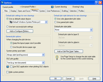 После корректировки настройки с помощью вкладки Plotting (Печать) следует щелкнуть кнопку Apply (Применить), которая фиксирует сделанные изменения.